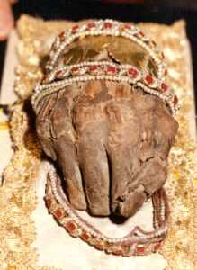 I. László magyar király1083. augusztus 20-ánVII. Gergelypápai engedélyével, a magyar püspökök, apátok és előkelők jelenlétében I. István király ezüstládába zárt ereklyéita székesfehérváriBazilikában oltárra emelte, ami I. István király szentté avatását jelentette. Ezután „a felszentelés ünnepségének befejeztével a szent testet az egyház közepén (in medio domus) fehér márvány szarkofágban helyezték el.” [17]Ezzel ő lett az első magyar katolikus szent és egyben szent király.[18]