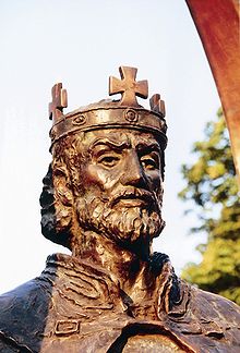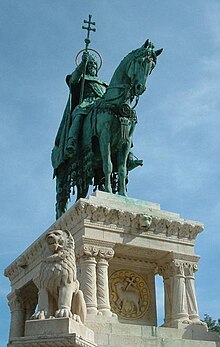 I. (Szent) István király (eredetileg Vajk, Esztergom,[1][2]969.[3]Székesfehérvárvagy Esztergom-Szentkirály,[4][5][6]1038. augusztus 15.) az első magyar király. Uralkodása alatt a magyar törzsekszövetségéből kialakult fejedelemséget egységes, keresztény magyar királysággá alakította át. Ez 1028-tól az egész Kárpát-medencére kiterjedt. Az általa meghirdetett új politikai irányvonalnak ellenszegülő törzseket (klánokat) fegyverrel vagy békés úton behódoltatta, a lázadásokat leverte. Az ezer éves magyar törvénytáraz általa alkotott törvényekkel kezdődik. Az államszervezet kiépítésével párhuzamosan megszervezte a magyar keresztény egyházat, ezért ő és utódai viselhették az apostoli király címet. Magyarországon minden év augusztus 20-ánI. István király szentté avatásának napját ünnepeljük.