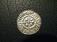I.(Szent) István 997 és 1038 közt vert ezüstdenárjának előlapja