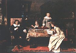 A vak John Milton diktálja leányának az Elveszett paradicsom c. művét (1878)
