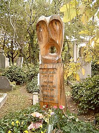 Szabó Lőrinc sírja Budapesten. Kerepesi temető: 34-5-43/44. Csóti Imre alkotása.