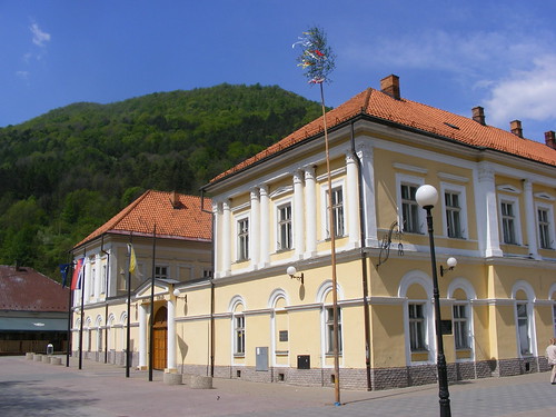 Hont vármegyénél szó volt arról, hogy Nógrád vármegye megalakulásakor kettészakították Hontot. Az eredeti Hont keleti szélén, a Rima völgyében alakult ki a Kis-Hont vármegye, amely a XIX. század eéejéig létezett, amikoris Gömörhöz csatolták. Nos, ennek a Kishont vármegyének Rimabrezóban levő vármegyeházát láthatjuk ezen a képen.