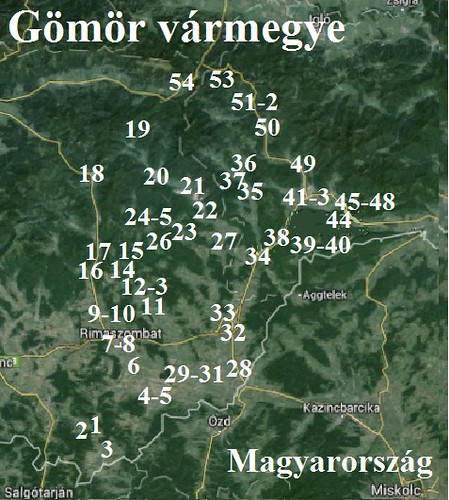 A Gömör vármegyével kapcsolatos térképek: 1.  a vármegye címere, 2. a vármegye a történelmi Magyarországban, 3. a vármegye körülbelüli helye a mai Szlovákiában, 4. a fényképek sorszámai a térképen jelzik a sorszámozott fényképek helyeit.