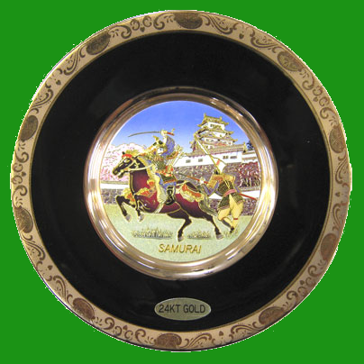 Japán szamuráj-domborműves porcelán 24 karátos aranybevonattal és oklevél