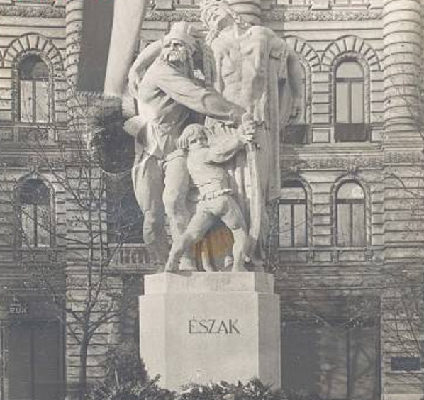Felvidék (Észak) szobrát Kisfaludi Stróbl Zsigmond készítette.(Az emlékmű főalakja a három méter magas, keresztre feszített Hungária. A hozzásimuló ifjú a tót nemzet ragaszkodását jelképezi az anyaországhoz. A kettő egységét kivont karddal előretörő kuruc alakja védi, emlékeztetve arra, hogy a magyar szabadságért Rákóczi hadaiban tótok is harcoltak.),