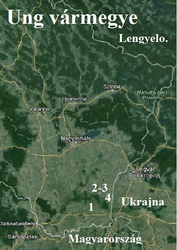 Az Ung vármegyével kapcsolatos térképek: 1. a vármegye címere, 2. a vármegye a történelmi Magyarországban, 3. a vármegye körülbelüli helye a mai Szlovákiában, 4. a fényképek sorszámai a térképen jelzik a sorszámozott fényképek helyeit.