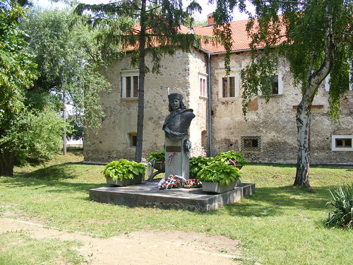 Borsi: Rákóczi-kastély. Előtte Rákóczi szobor. Az eléggé mostoha állapotban levő reneszánsz palotában megvan az a szoba, ahol Zrínyi Ilona megszülte Rákóczi Ferencet.
